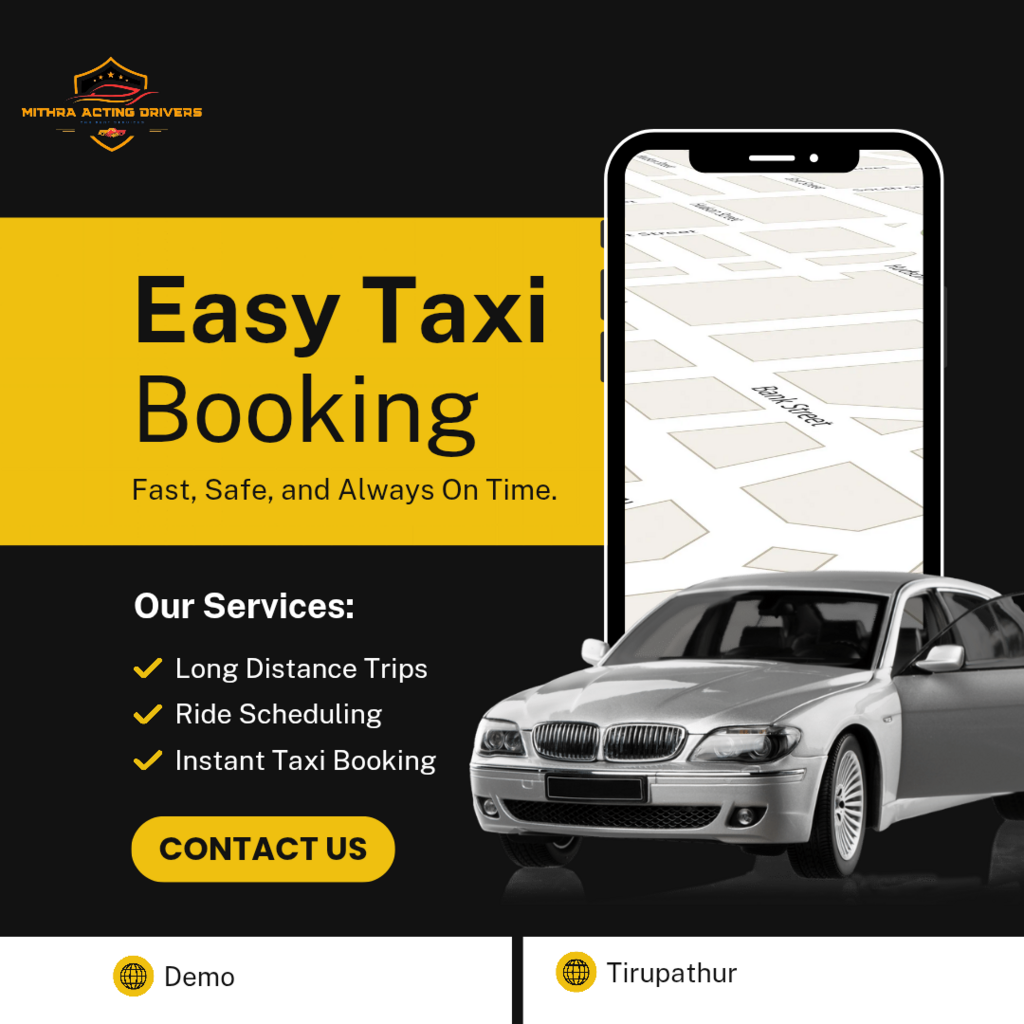 For business travelers, Mithra Call Taxi offers professional, well-timed, and smooth taxi services that support busy schedules. We understand the importance of time and provide fast pick-ups, route optimization, and full privacy during travel. Whether you need a taxi for a meeting, client visit, or office transfer, our service ensures high comfort and zero delays. Many companies in Tirupathur rely on us for corporate travel because of our disciplined and professional approach.